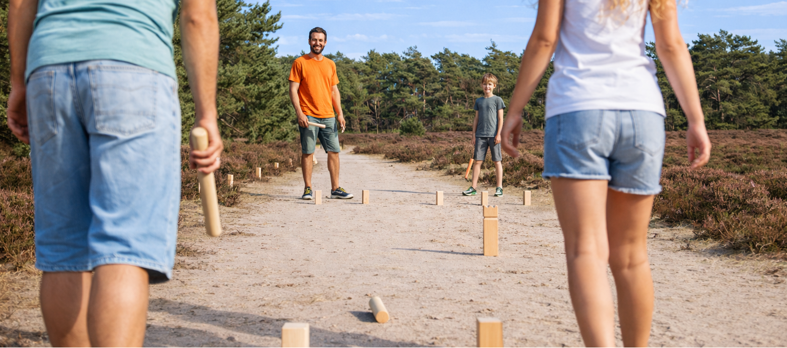 Kubb is een oud Zweeds buitenspel waarin precisie en tactiek samenkomen. Het spel is leuk voor jong en oud!